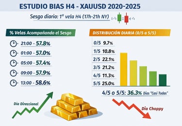 Lo es, pero no por sí solo. El sesgo de la primera H4 aporta una ventaja estadística: aumenta la probabilidad de que varias velas del día cierren en la misma dirección, y eso favorece estrategias de continuación. La clave está en filtrar el “régimen” (días 4/5 o 5/5), aplicar una gestión de riesgo estricta y usar confirmaciones (estructura, volatilidad, niveles). Sin esos filtros, el mercado alterna fases mixtas y choppy y la ventaja se diluye.